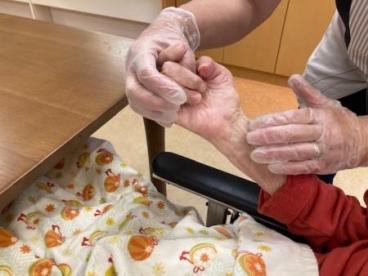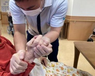 また、看護師が介護職へ拘縮予防の伝達を行っています。
