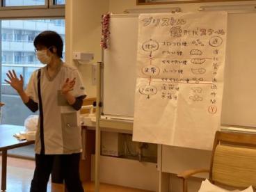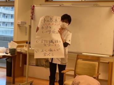 本日はお客様へ看護師が、便秘予防の勉強会と、体操を実施しました。