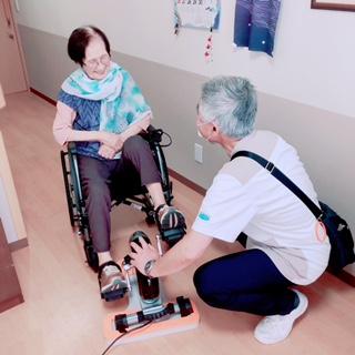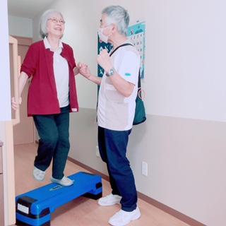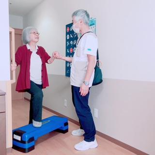 歩行訓練、踏み台昇降訓練、自転車こぎ訓練、ステッパー訓練、マッサージを兼ねた関節可動域、さらに外出にむけての階段昇降訓練や、「自宅に帰りたい!」などのご要望に即した目的地までの屋外歩行訓練などを行なっています。