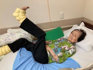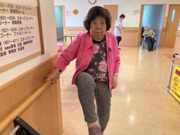 いつものスタッフと一緒に、何気ない生活の中でも手や足を動かして体力維持に努めています。