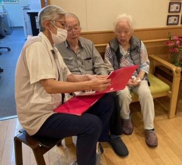 施設イチ元気なケアマネジャーが、「歌をうたっていきましょう!」と提案。