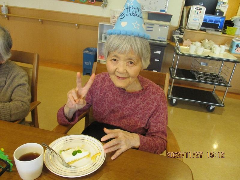 お客様の前で披露したい!と音楽教室に通っている職員がサックスを演奏してお祝いしました。