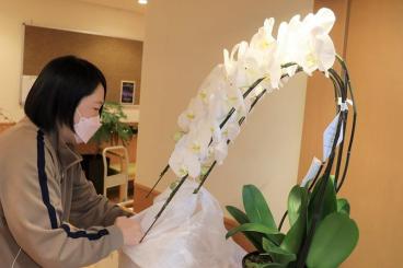 以前ご入居されていらっしゃったお客様のご家族から「ご入居中の皆様に見ていただけたら胡蝶蘭も喜びます」と、とても立派な胡蝶蘭を頂戴しました。