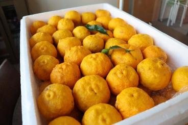 ゆずは霜が降りる前に採るものだそうで、ゆず湯には少し早いのですが本日届きました。