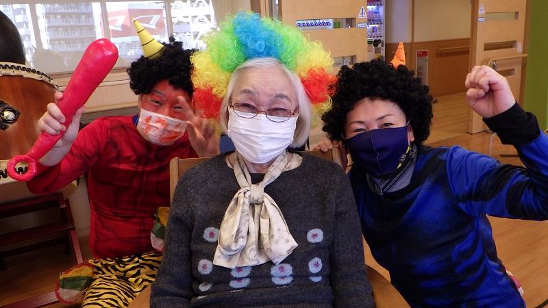 恒例の節分行事を行いました。4・5階は、最近まで感染対応にて、お部屋で過ごして頂いていたので、皆様「スッキリしたい!」と仰っていました。