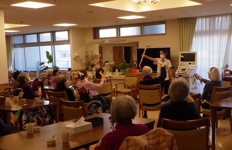 春が近づきました。寒さがやわらぎ、お客様も、フロアレクリエーションに活発に参加してくださっています。