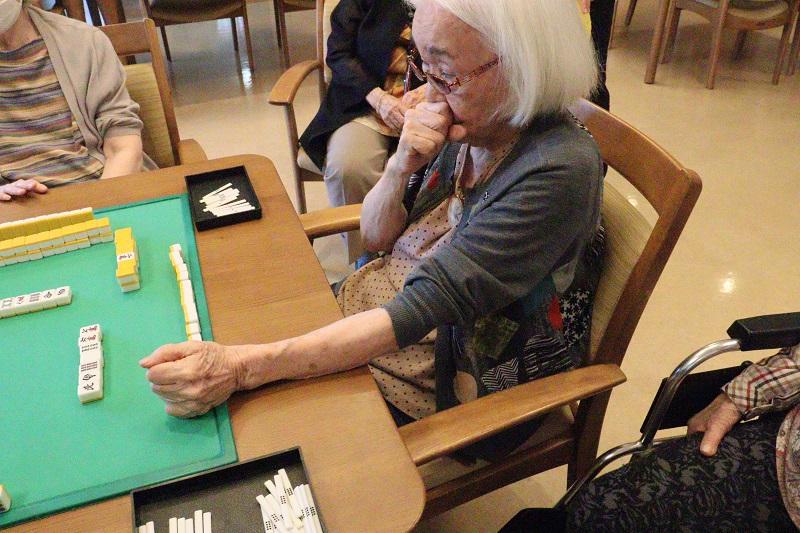 新しいメンバーも加わり、今月も麻雀倶楽部開催。「麻雀なんて忘れたよ~」とおっしゃりながらも、牌を握ると昔を思い出して真剣勝負です!