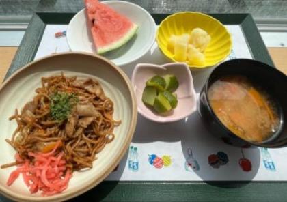 ・焼きそば・豚汁・じゃがバター・きゅうりの浅漬け・スイカ