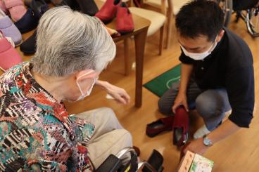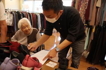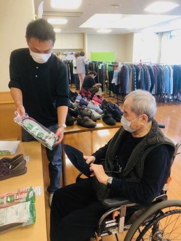 今回は衣類やお菓子に加え、福祉用靴の出品もありました。