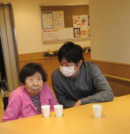 あまりにほっこりしたため、思わずお客様と施設長にカメラを向けました。