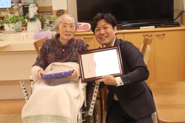 今日は百寿のお祝いの日。スタッフ一同としても、とても嬉しい日です!
