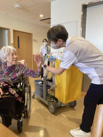 また清掃スタッフが、お客様のお部屋のご様子や洗面の使用方法などを観察して、お客様の体調の変化や異変を察知することがあり、その際には介護スタッフ等に情報提供することもあります。