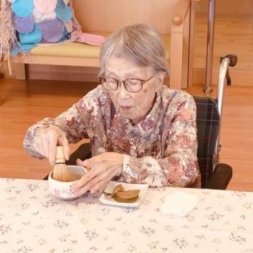【お茶クラブ】では、おやつ時間にお抹茶をたてておやつを食しながら、味わっていただいています。
