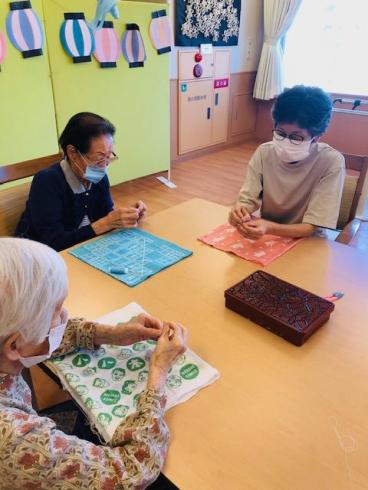 今回は針と糸をつかって手ぬぐいを縫いバックをつくっていただきました!