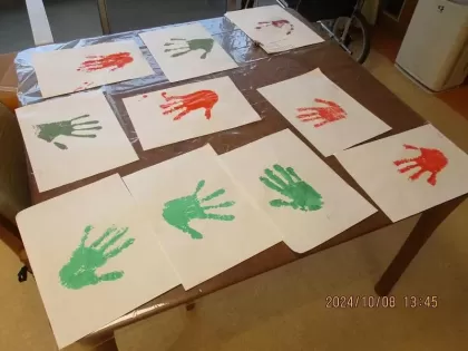 毎年11月に開催される作品展に向けて、みなさんに手形の協力をしていただきました。