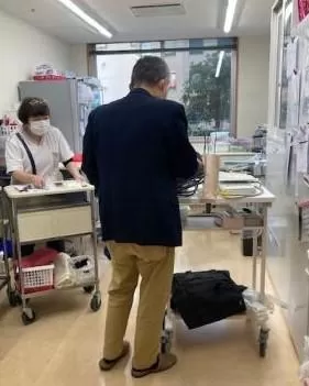 検尿を実施したり、ポータブルのエコーを施設に持参されて、お部屋でも膀胱や腎臓のご様子などをみてくださいます。膀胱留置カテーテルの交換も実施しています。