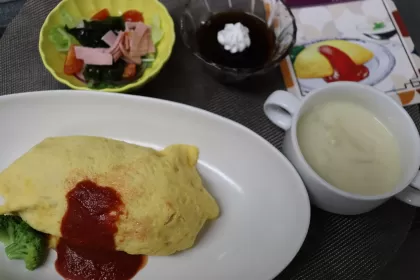 12月の昭和食堂メニューは【オムライス・ハムサラダ・ポタージュスープ・コーヒーゼリー】