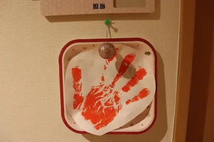 ツクイ・サンシャイン横浜野毛の6階では、11月の作品展で作成したお客様の手形を、記念にお一人おひとりの居室前にアレンジし飾らせていただきました。