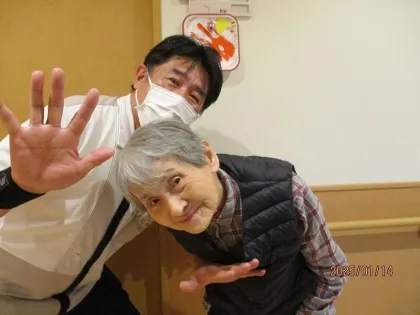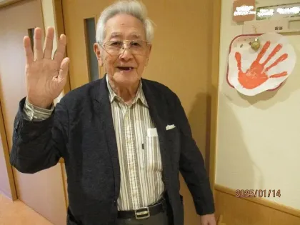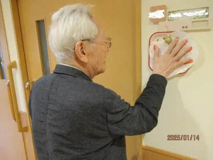 飾ってすぐに、手形に手を合わせ、「いい飾りだね」「こんなに手が大きかったんだ」と嬉しそうに話されていました。