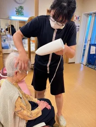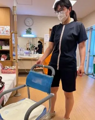 また、浴室での歩行が難しいお客様には専用のイスを使用し、体を洗う場所や、浴槽までスタッフが介助いたします。