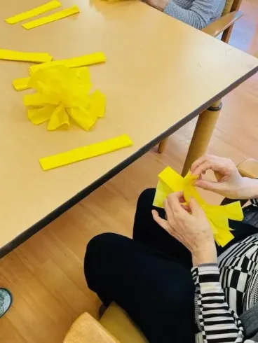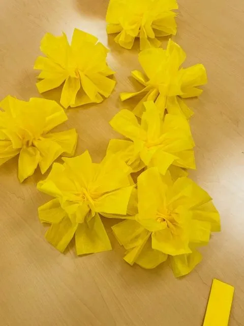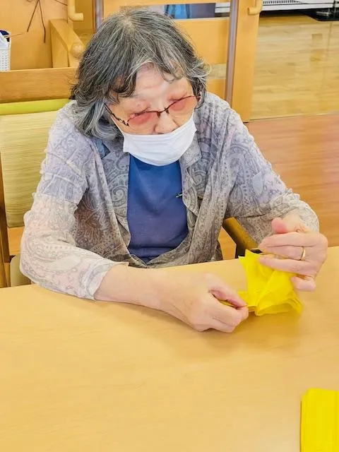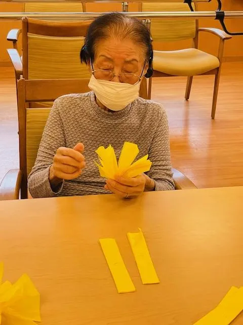 「花紙をいつもと異なる開き方をするのは、なれていないので難しい」と、はじめはお話しさせていた方も徐々に慣れてきて、手際よくたくさんつくってくださっています。