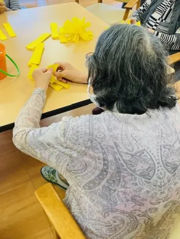 また制作時間も人気があり、今回は4階のお客様とこれからの時期にふさわしい壁面飾りを作成中です。