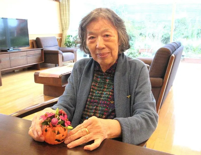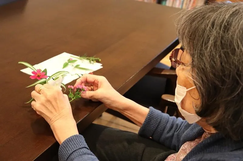 10月末のハロウィンに合わせ、屋上で咲いた花を使いハロウィンフラワーアレンジメントを楽しまれていたお客様。
