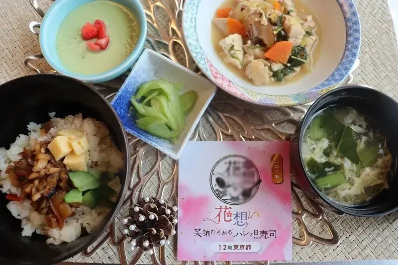 メニューは、大村寿司・長崎天ぷら・キャベツの昆布あえ・ゆずゼリー・すまし汁。
