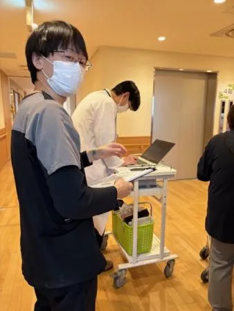 訪問診療には毎回、担当の薬剤師が同行し、その場で医師と薬の内容の確認や相談を行っています。