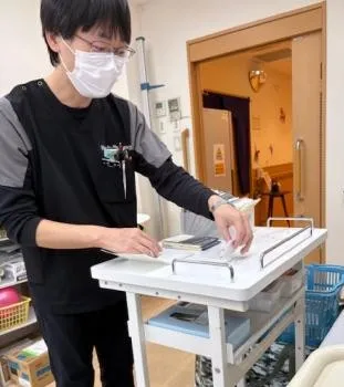 診察前には、施設の看護師や訪問診療先の看護師と連携し、お薬が足りなくなったり、また過剰な処方とならないよう、残薬の管理も細かく行っています。また薬剤師より減薬や、お客様の負担にならないような用法など、さまざまなアドバイスをしてもらいます。