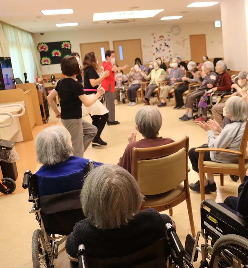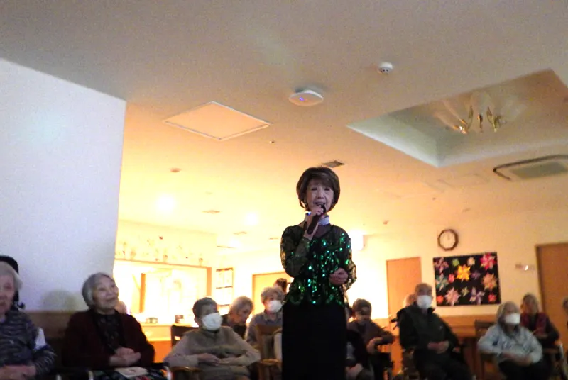 スタッフが心を込めて披露した歌謡ショーでは、知っている曲に合わせて口ずさんだり、リズムに乗って体を揺らしたりする姿が多く見られました。