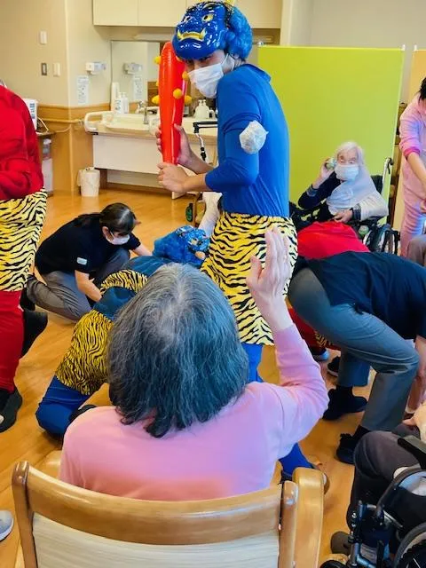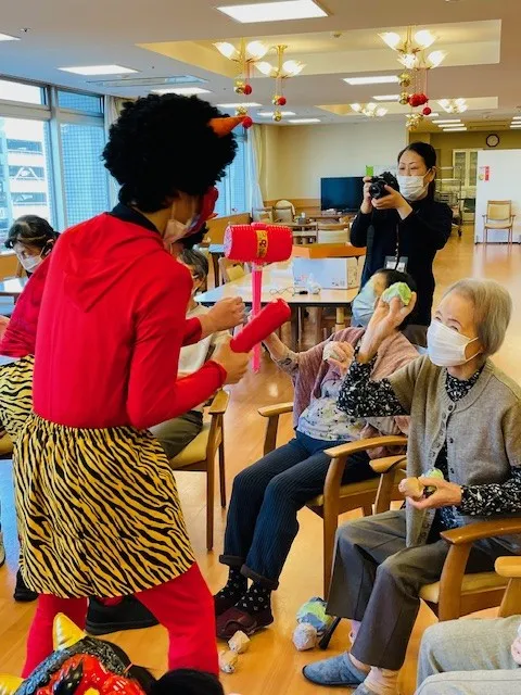 鬼に扮したスタッフがフロアごとに出向き、豆に見立てた新聞紙玉をお客様が鬼に一斉に投げ福を呼び込みました!