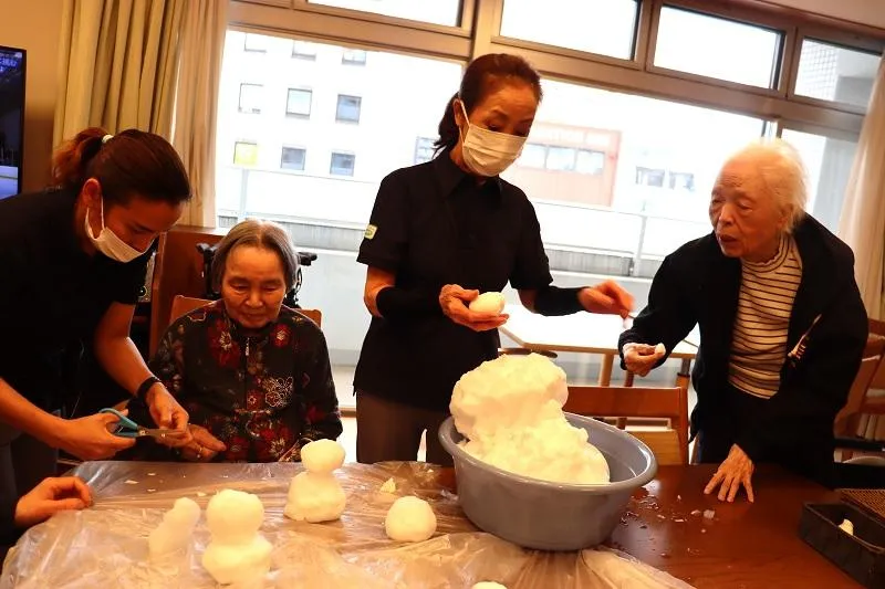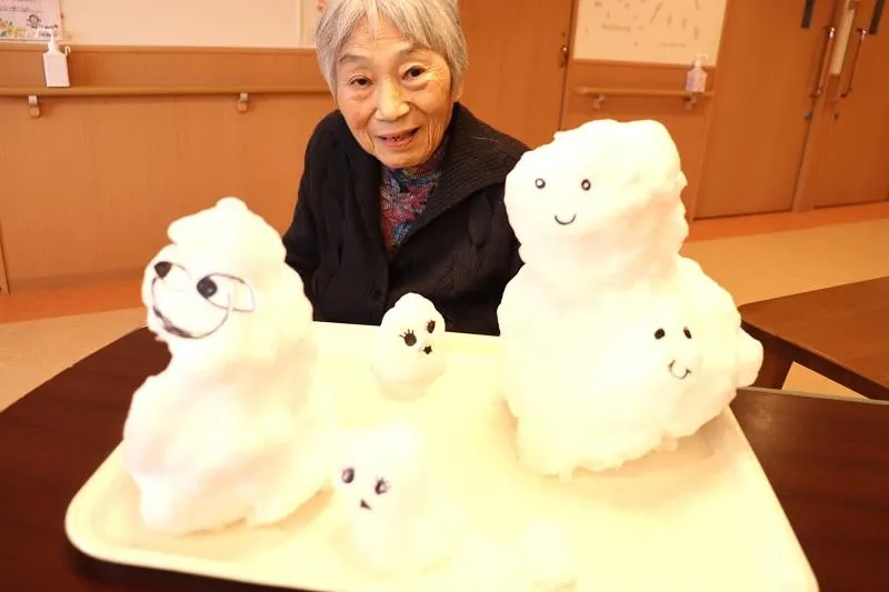 皆さん集まって雪だるま作りをしました。