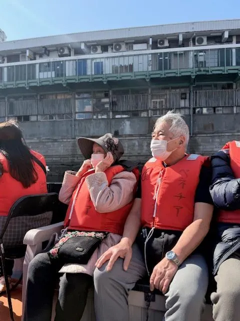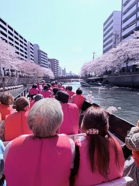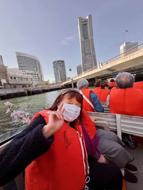 大岡川沿いの桜並木を施設の真下にある日の出桟橋からベネチア号に乗り、みなとみらいまで川の中から桜をながめ楽しみました。