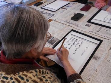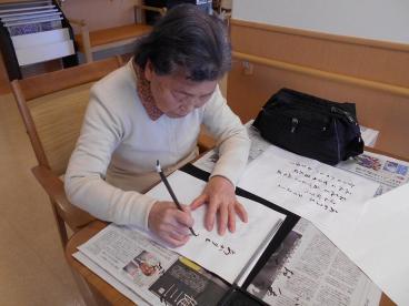 今日の習字は春らしい歌を小筆で挑戦しました。