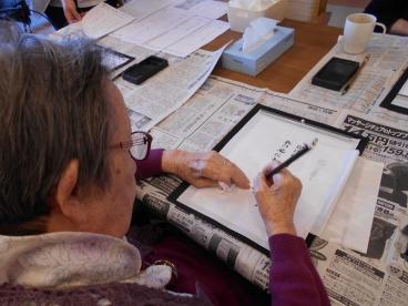 小筆で細かく書くのは、バランスがとりづらく難しいのですが、歌詞の春を感じて楽しく行う事ができました。