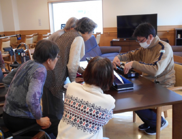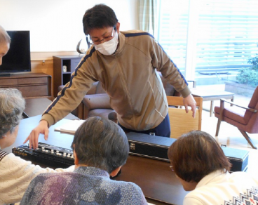 大正琴で『さくらさくら』や『荒城の月』『ふるさと』などを演奏、音色に合わせて歌を歌いました。