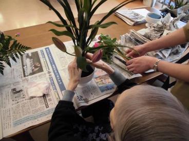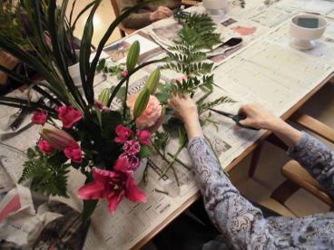 いつもお願いしているお花屋さんよりお花と見本・手順を頂き、フラワーアレンジメントをしました。