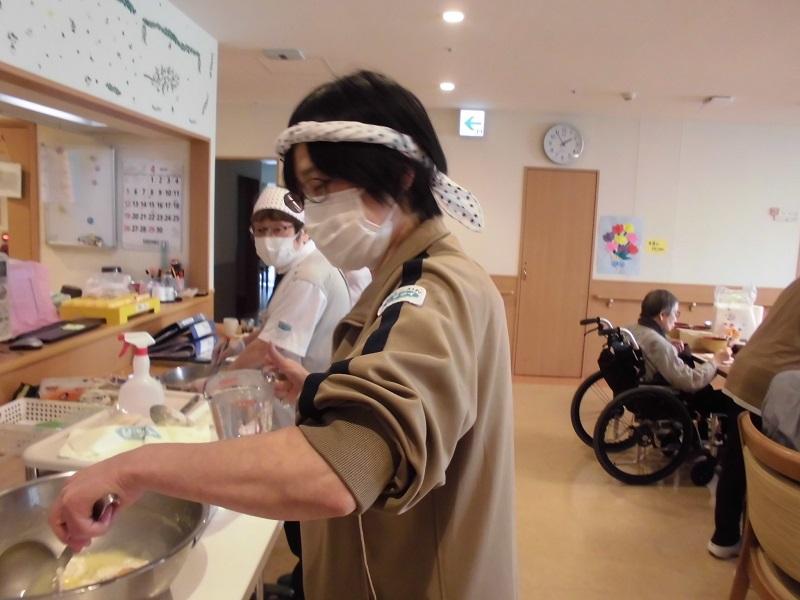 職員もお客様も今日のおやつのために大奮闘!! 鉄板の熱気とたこ焼きの香りに包まれました!!毎回、大好評で食べ過ぎないように見守る職員でした。