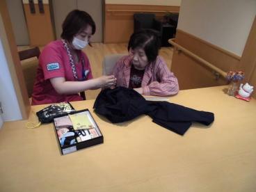 ふと気が付くと一緒に看護師が、、、「しつけ縫いをしてからよ!」「しつけ縫いって何ですか?」「えーー!!」とお裁縫を習っているのか、遊んでいるのか解らない楽し気な雰囲気になっていました。