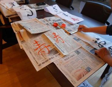 お獅子が持つ巻物は、お客様に手伝っていただき作成中。