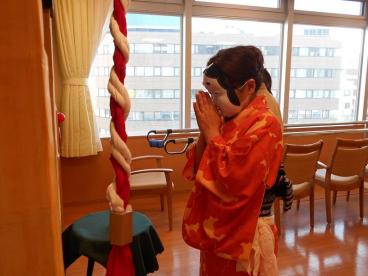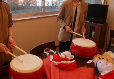 毎年お正月には獅子舞に来ていただいておりましたが、今年はコロナ禍ということで職員が頑張って舞うことにいたしました。
