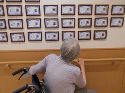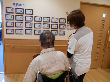 事務所前の廊下や各階の談話室に、職員の紹介カードを掲示しました。