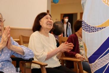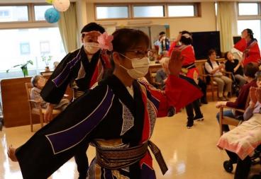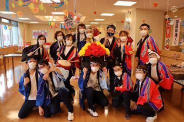 ひと月程前から、朝の体操や午後のレクリエーションの時間にお客様と一緒に練習してきた、『東京音頭』と『炭坑節』を踊りました。