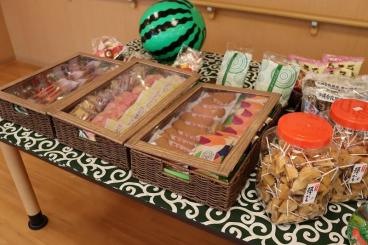 昭和の駄菓子屋をイメージした、その名も「昭和堂」で、諸国銘菓の当たるくじを楽しんでいただきました。