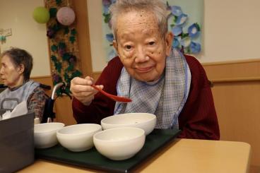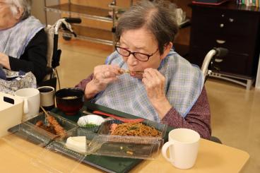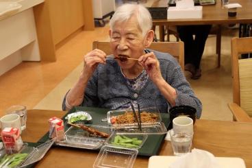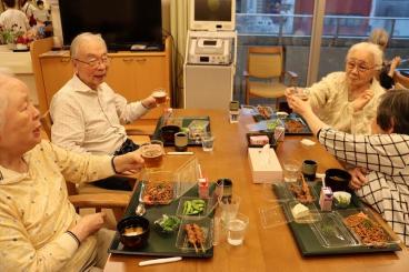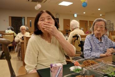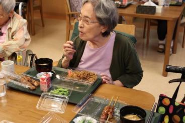 お神輿や盆踊り、ゲームやおやつ・・・とお楽しみ頂いた後は、夜のお食事でお祭りも締めくくり。
