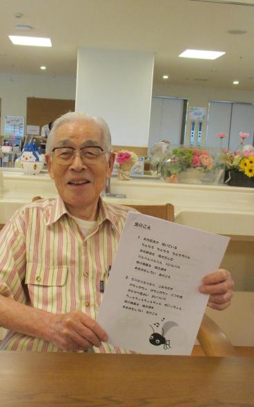 月に一度の歌の会、今月は「虫のこえ」「赤い靴」「砂山」「とんぼのめがね」「この道」「浦島太郎」「里の秋」「故郷」の8曲をご用意しました。