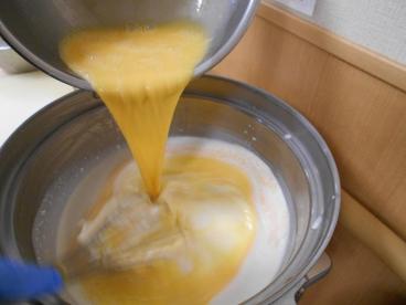 約30名分のクレープ(おかわり自由)の生地作りです。
