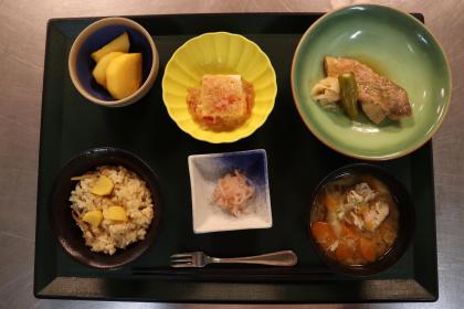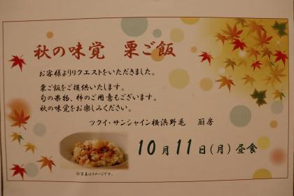 本日の昼食は、お客様からのリクエストにお応えして、栗ご飯をご提供しました。