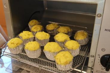 素材のお味を邪魔しない程度にバター・牛乳・砂糖を加え、ディッシャーでカップに盛り付け、トースターで焼いて完成!